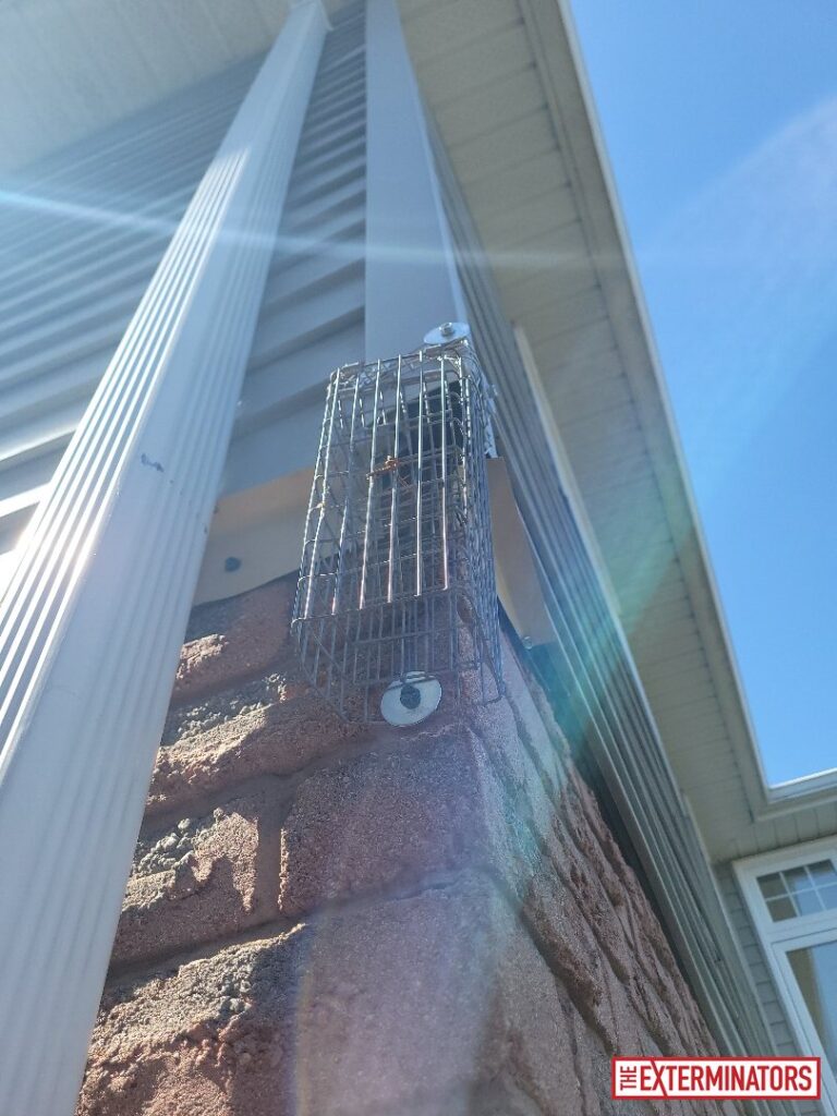 Five exterior siding gaps were identified during inspection. Four of these openings were sealed using appropriate materials. The main entry point was fitted with a rodent one-way door, allowing rats to exit the structure while preventing re-entry. Full exclusion of all potential entry points was discussed but not undertaken beyond the areas noted above.